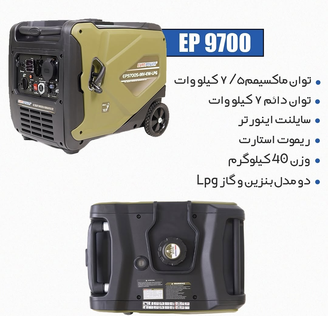 موتور برق سایلنت ۷/۵ کیلو وات یورو پاور مدل EP9700S-Inv-EW-R