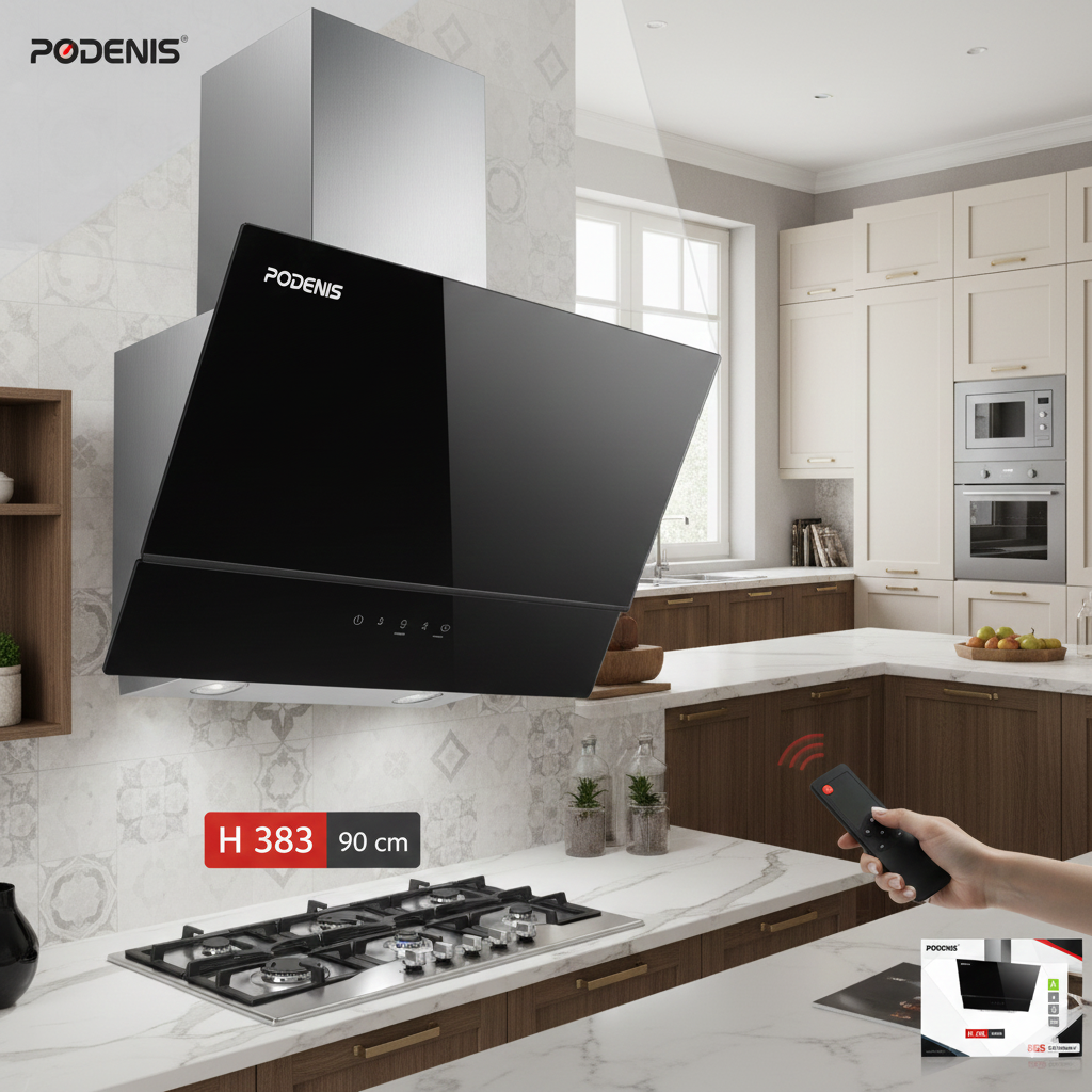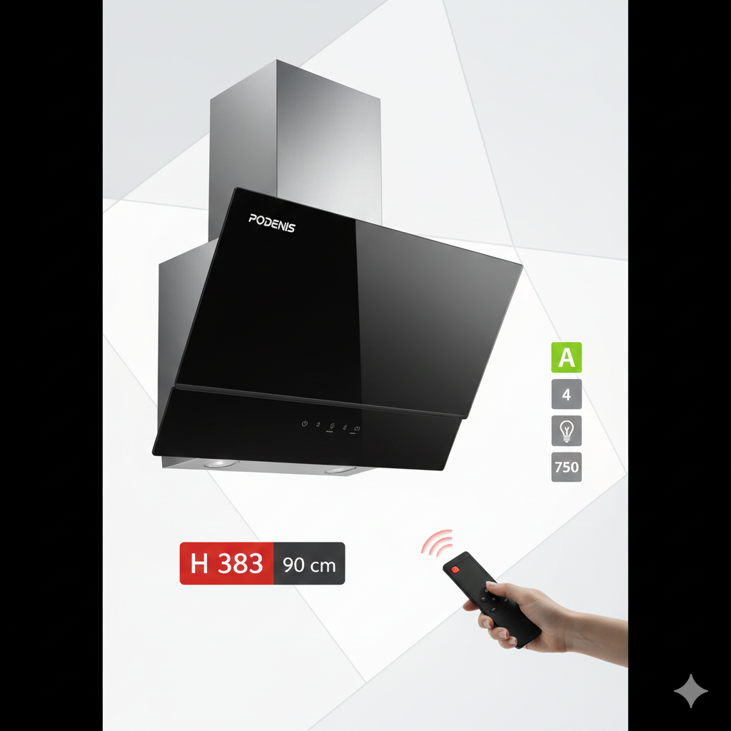 اگر به دنبال ترکیبی از زیبایی مدرن و قدرت مکش فوقالعاده هستید، هود مورب Podenis مدل H 383 بهترین انتخاب برای آشپزخانه شماست. این هود با عرض ۹۰ سانتیمتر و طراحی شیشهای مشکی سکوریت، ظاهری لوکس به فضای پختوپز شما میبخشد.